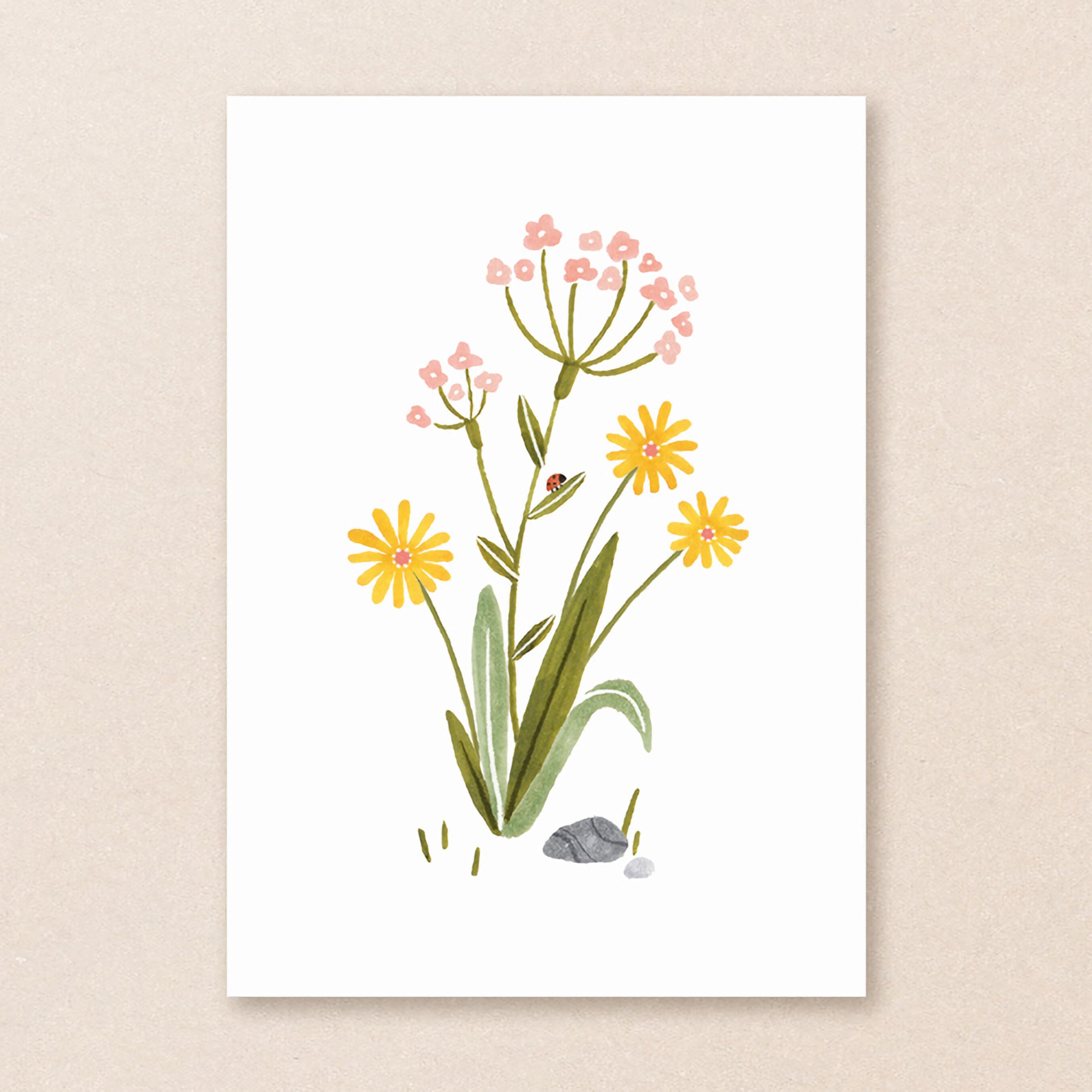シンプルでかわいらしいパステルカラーで描かれたお花のポストカード。